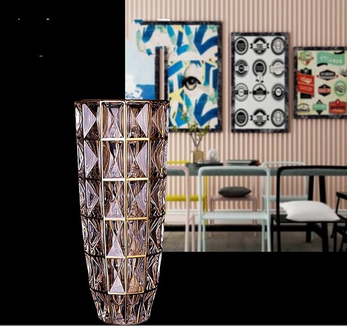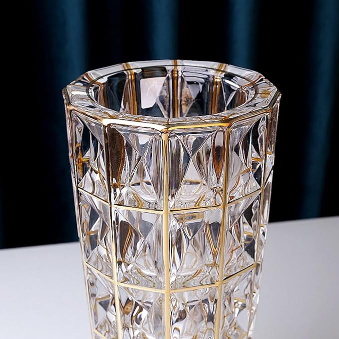 Hand Painted Gold Unique Diamond-Shaped Glass Flower Vase 11.8" Tall for Home Decor, Dining Wedding Table Office Holiday Party Centerpiece Decoration.