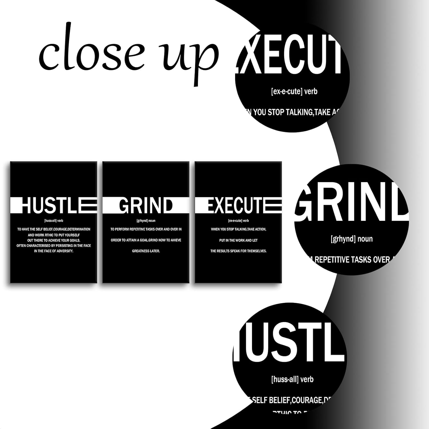 Hustle Grind Execute Entrepreneur Quotes Poster Print Motivational Pictures Painting Inspirational Canvas Wall Art for Office Bedroom Living Room School Wall Decor Ready to Hang [60''Wx28''H]