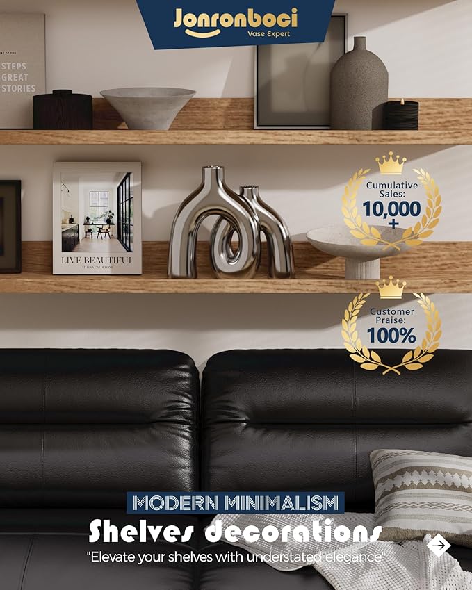 Hug Donut Decorative Vase Set - Silver Vase, Modern Nordic Boho Style Vases Home Decor, Matte Ceramic Decorations for Living Room Shelf, Bookshelf Mantle Entryway Table or Console Décor (Silver)