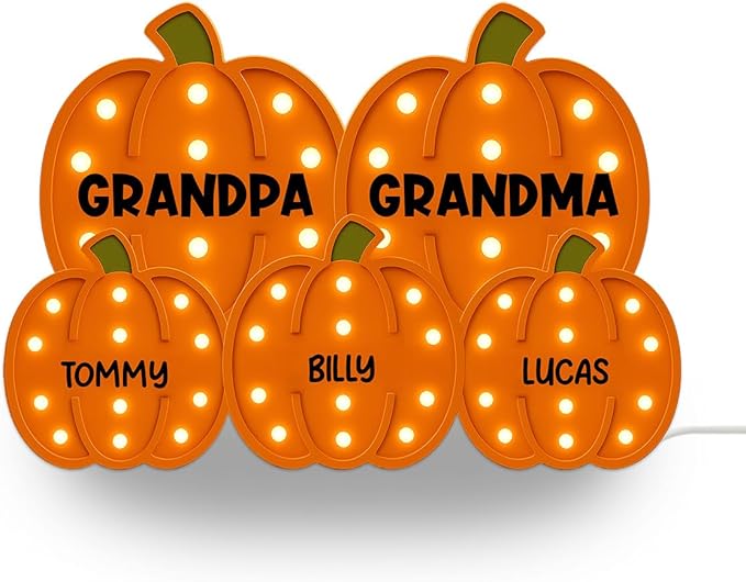 3D Effect Halloween Collapsible Light Up Pumpkin Decor - Halloween Pumpkin Indoor Decor Light Up - Cozy Fall Vibe Home Decoration - Personalized Light Box (Grandpa & Grandma Version)