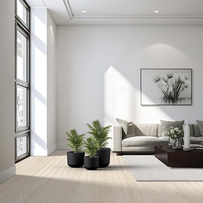 Kante 13",11",9" Dia Black Round Planters (Set of 3), Outdoor Indoor Modern Planter Pots, Lightweight, Weather Resistant, Seamless with Drainage Hole