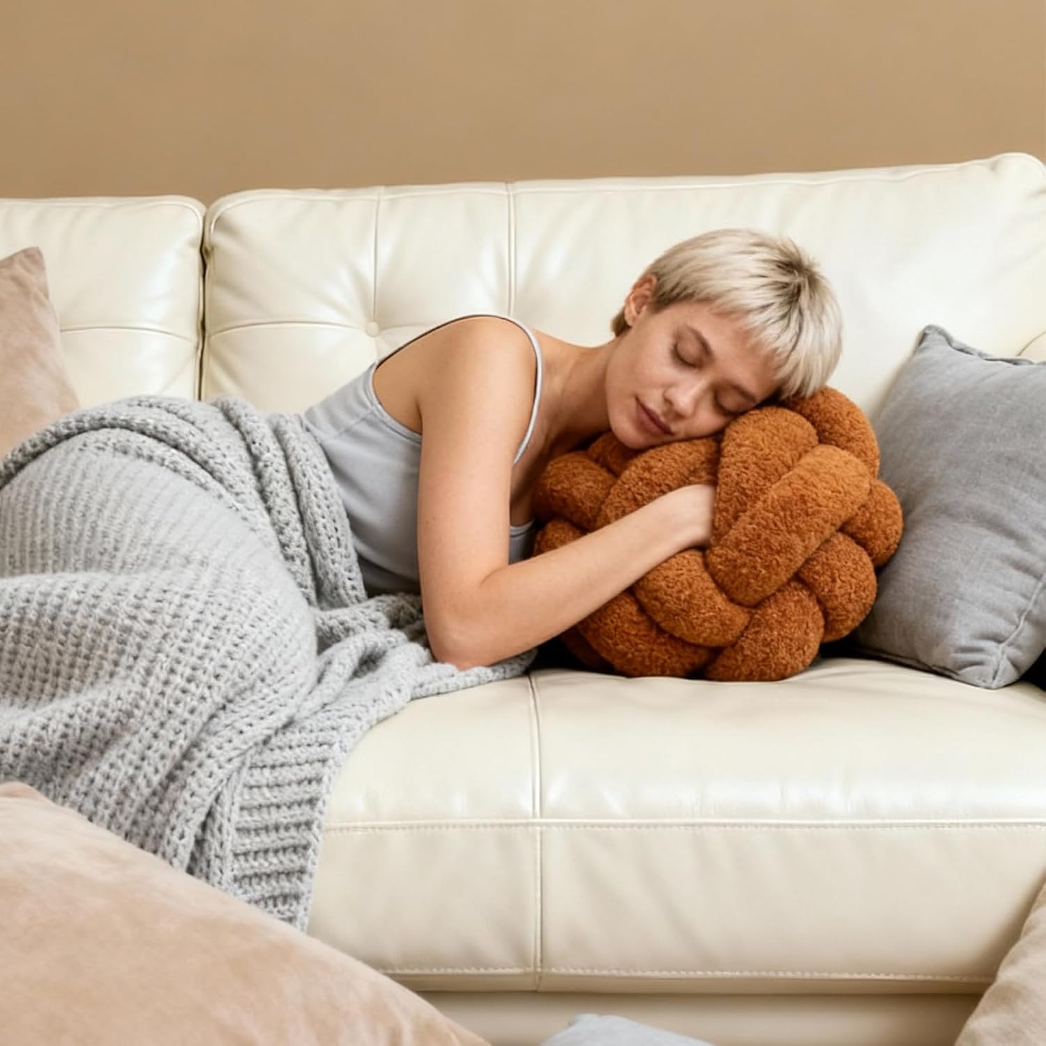 Knot Pillow Ball Plush - Decorative Throw Pillows for Bed Relieve Stress, Round Knot Cushion for Sofa Decor Pet Toy, Brown 12 inch