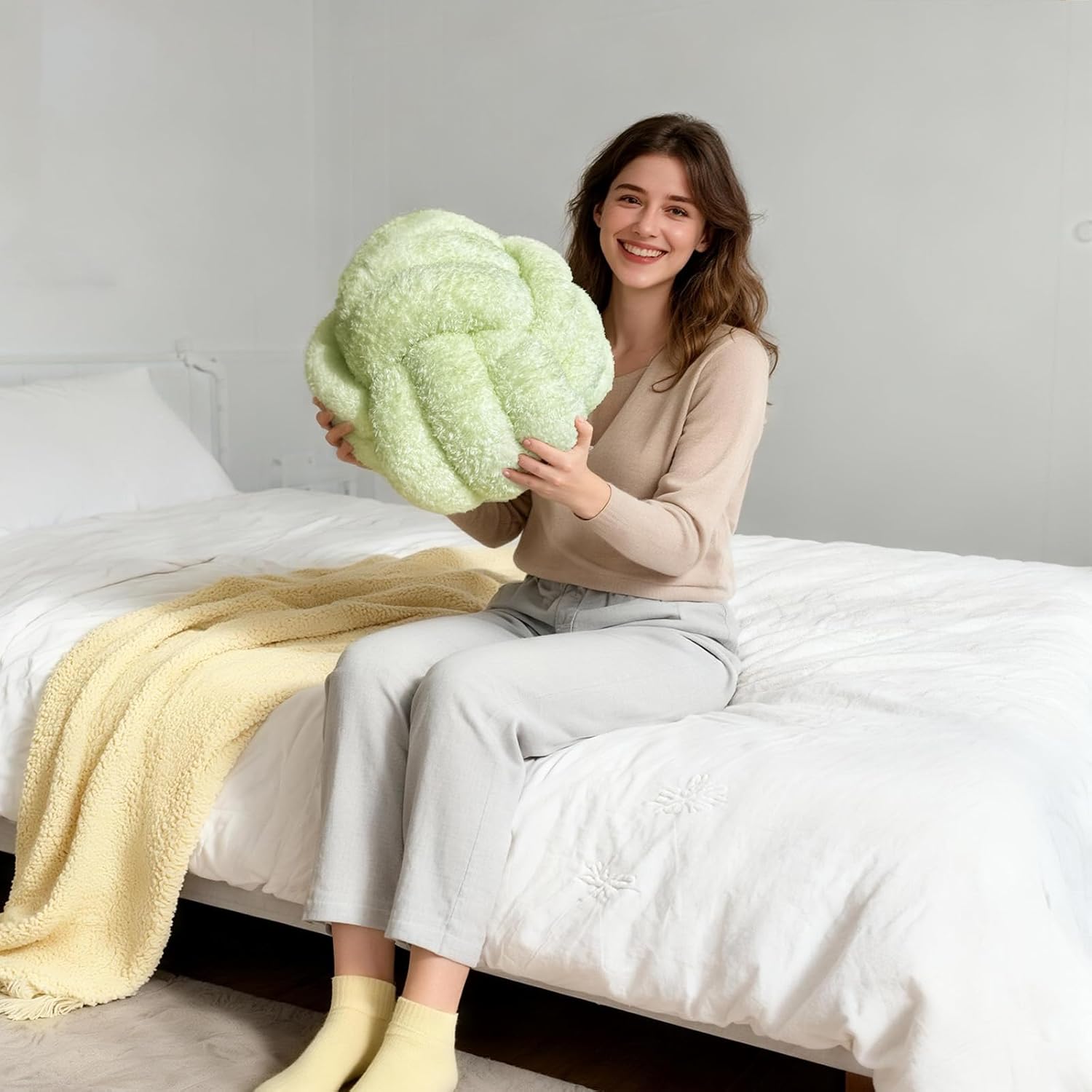 Knot Pillow Ball Plush - Decorative Throw Pillows for Bed Relieve Stress, Round Knot Cushion for Sofa Decor Pet Toy, Sage Green 12 inch