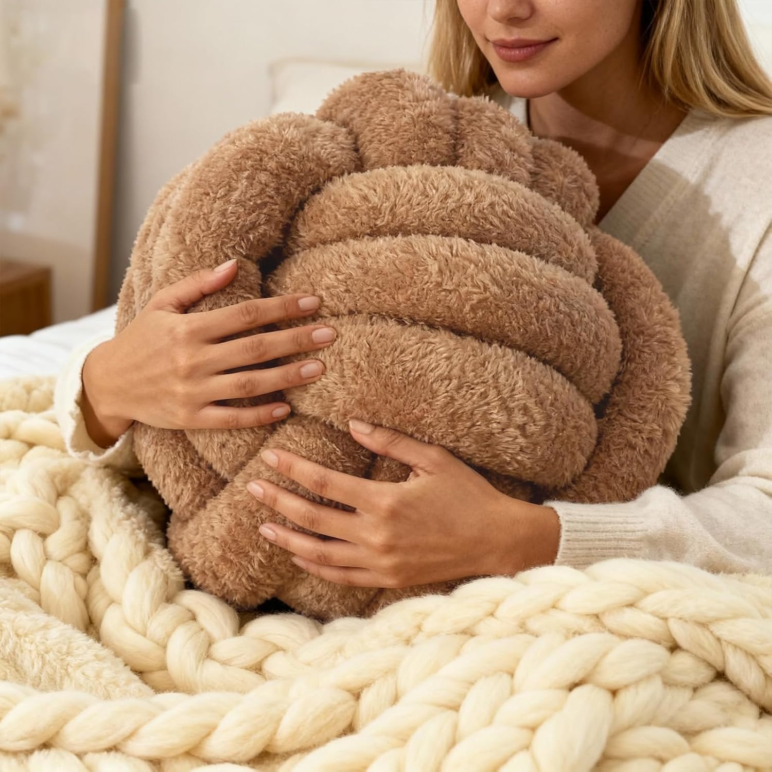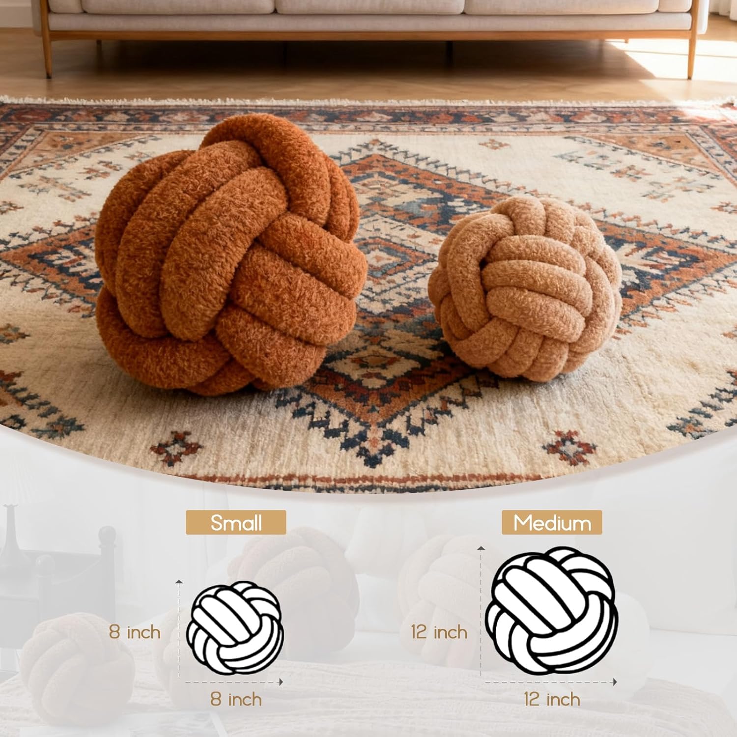Knot Pillow Ball Plush - Decorative Throw Pillows for Bed Relieve Stress, Round Knot Cushion for Sofa Decor Pet Toy, Khaki 12 inch