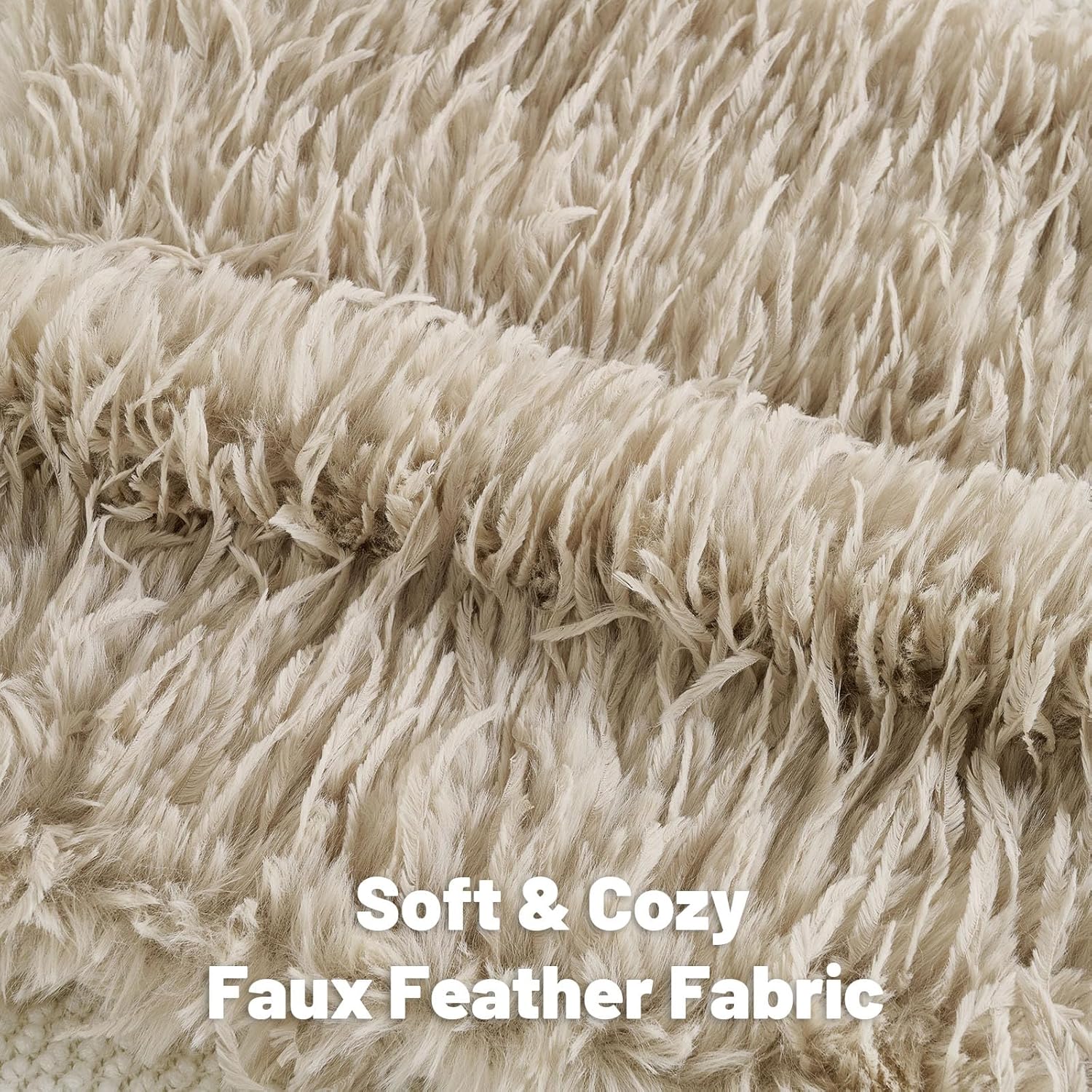 - Faux Feather: Crafted from thick, plush fabric on both sides, it features a soft, feather-like texture. The shaggy pile feels luxuriously cozy against the skin, offering the ultimate comfort for relaxation.