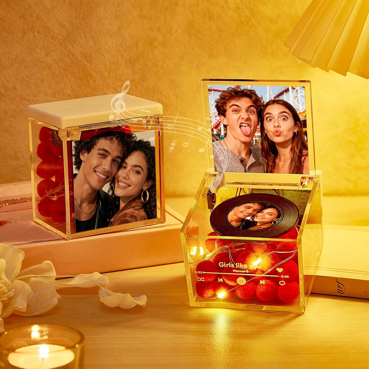 - šµ Personalized Music Box Gift for Any Occasion: Create a one-of-a-kind keepsake that plays your favorite song! This personalized music box lets you upload your own photo and custom tune, turning precious memories into sound and light. Perfect for anniversaries, weddings, birthdays, or Christmas gifts for couples, friends, and family.